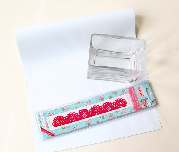 Cắt vải mỏng thành hình bông hoa đơn giản. Gợi ý là hoa dại cho dễ cắt. Cắt đến khi nào bạn cảm thấy đủ số lượng trong bình hoa mình muốn cắm. Dùng đến giấy trắng, cắt giấy trắng thành những dài dài có chiều rộng bằng với chiều rộng của dụng cụ dập cắt đường viền. Dùng dụng cụ dập cắt đường viền cho những dải giấy, như hình rèm cửa hoặc khăn trải bàn cho dễ thương. Tương tự, bạn cắt đường viền cho những dải giấy còn lại. Mục đích là dán xung quanh bình hoa các dải đường viền giấy thành 2 vòng bên ngoài để trang trí.